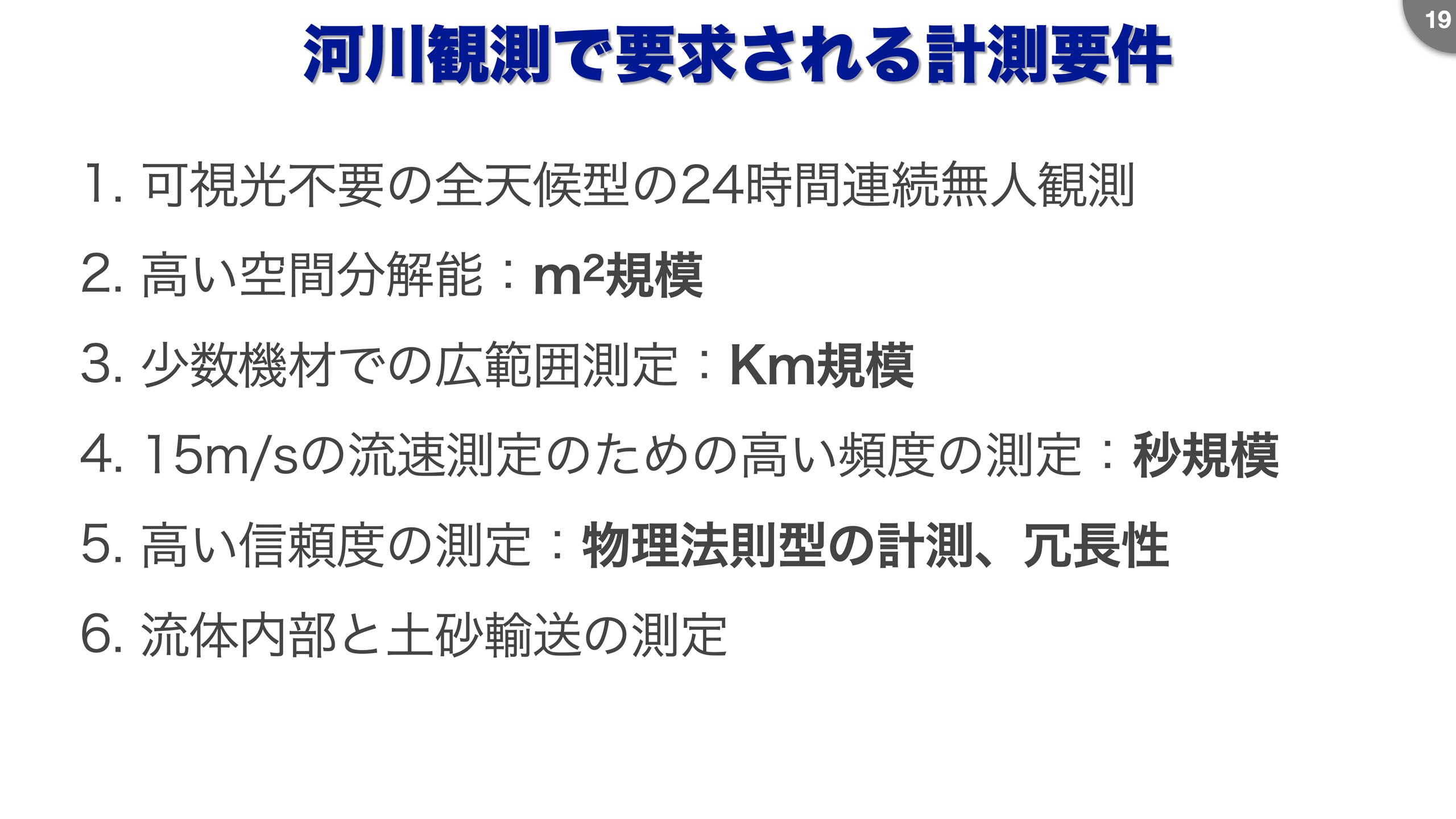次に、河川の測定についてですが、日本も欧州も新しい技術は意外と導入が進んでいないと思います。 川についての高い分解能での定量評価ができないと、洪水時の振る舞いと年間の99%とも言える普段の振る舞いについて、今以上の理解を深めることができないと思います。 洪水時の測定・観測は今後も重要ですが、ネイチャーポジティブや生物多様性の視点では平常時の川の振る舞いも今まで以上の解像度で捉える必要性が増すと考えています。