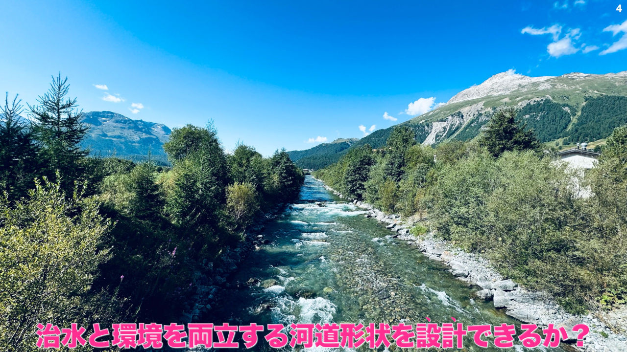 三つ目の話題として、水理学の根本を覆すような最新の研究成果についてお話しします。 今の水理学は、乱暴な言い方をすると、等流の呪縛から抜けられていません。 その呪縛から抜けると川の挙動の予測性能が上がり、その結果、治水と自然環境の保全が両立する河道ができてくるのではないかという話をします。