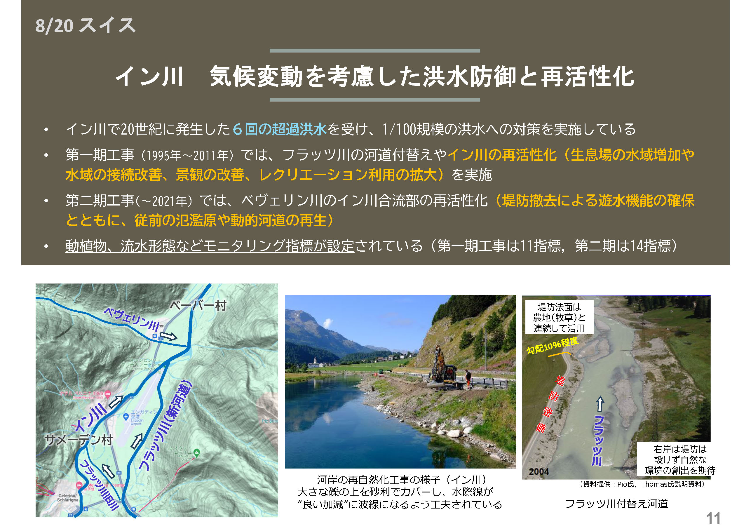 2つ目は、特にスイスですが、自然再生について定量的に評価し、結果を踏まえて継続的に維持管理する。 また、知見の横展開を図っていました。 技術者の育成により、次世代につなげていくということも印象深かったです。