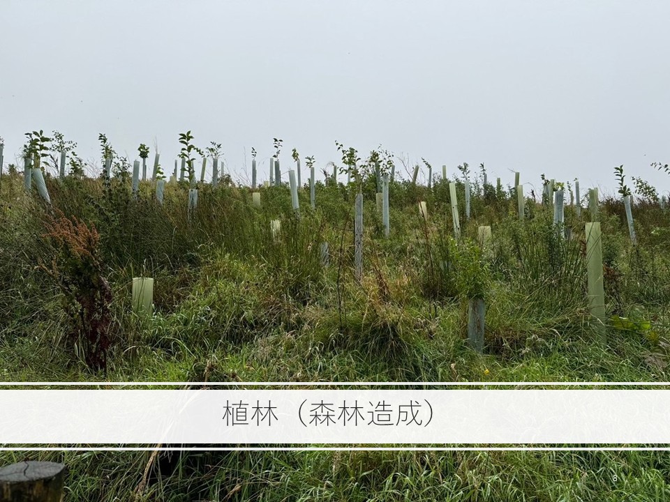 ワイヤ川流域では、先ほどの70haとは別に39haの森林造成も実施しています(図3)。 70haの内訳は、リーキーダムが1,700箇所、窪地・池が42箇所、ヘッジローが10kmほど。 他に、泥炭や草地の再生です。 目的は洪水対策だけではなくて、浸透を増やすことや脱炭素もあるので、これらもメニューに入っています。
