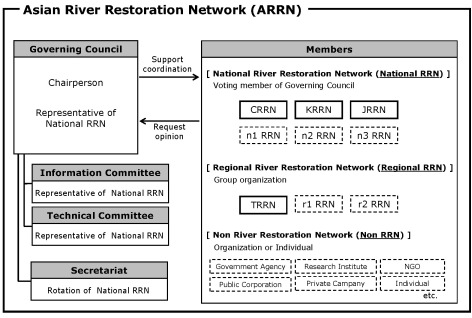 ARRN is a non political network for exchanging knowledge and technological information on the restoration of rivers and watersheds in Asia. One of the objectives is to provide various opportunities and venues for river restoration related organizations and individuals to share and exchange knowledge and experiences related to the restoration of rivers and watersheds through the network. ARRN aims to enrich the participants' knowledge and scientific technology through mutual and multilateral cooperation, and ARRN also contributes to creation of rich river environment in Asia.